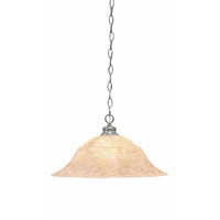 Collection: Chain, Material: Glass, Finish Color: Brushed Nickel, Width: 20", Height: 10.25", Chain Length: 72", Lamping Type: Incandescent, Number Of Bulbs: 1, Wattage: 60 Watts, Dimmable: Yes, Moisture Rating: Dry Rated, Desc: Chain Hung Pendant Shown In Brushed Nickel Finish With 20 Inch Amber Marble Glass,
