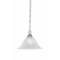 Collection: Chain, Material: Glass, Finish Color: Brushed Nickel, Width: 14", Height: 9.75", Chain Length: 72", Lamping Type: Incandescent, Number Of Bulbs: 1, Wattage: 60 Watts, Dimmable: Yes, Moisture Rating: Dry Rated, Desc: Chain Hung Pendant Shown In Brushed Nickel Finish With 14 Inch White Alabaster Swirl Glass,
