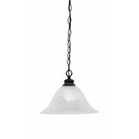 Collection: Chain, Material: Steel, Finish Color: Matte Black, Width: 14", Height: 9.75", Chain Length: 72", Lamping Type: Incandescent, Number Of Bulbs: 1, Wattage: 60 Watts, Dimmable: Yes, Moisture Rating: Dry Rated, Desc: Chain Hung Pendant Shown In Brushed Nickel Finish With 14 Inch White Alabaster Swirl Glass,