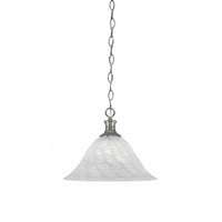 Collection: Chain, Material: Glass, Finish Color: Brushed Nickel, Width: 14", Height: 10.75", Chain Length: 72", Lamping Type: Incandescent, Number Of Bulbs: 1, Wattage: 60 Watts, Dimmable: Yes, Moisture Rating: Dry Rated, Desc: Chain Hung Pendant Shown In Brushed Nickel Finish With 14 Inch White Alabaster Swirl Glass,