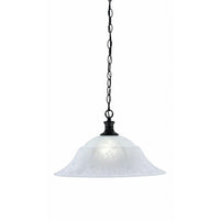 Collection: Chain, Material: Glass, Finish Color: Matte Black, Width: 20", Height: 11.25", Chain Length: 72", Lamping Type: Incandescent, Number Of Bulbs: 1, Wattage: 60 Watts, Dimmable: Yes, Moisture Rating: Dry Rated, Desc: Chain Hung Pendant Shown In Brushed Nickel Finish With 20 Inch Amber Marble Glass,