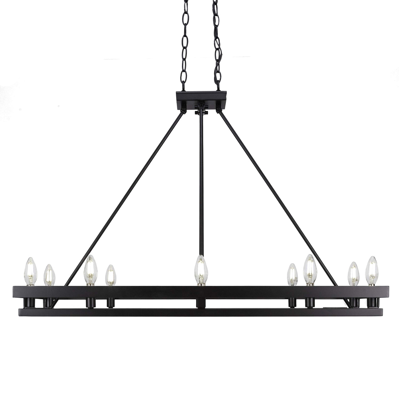 Q: What type of bulbs does the Toltec Lighting Belmont 10 Light Island use?A: The Toltec Lighting Belmont 10 Light Island uses 10 E26 incandescent bulbs, each rated at 60 watts. Please note that bulbs are not included with the fixture.