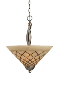 The Toltech Lighting 274-BN-718 Bow Two-Bulb Up light Pendant Brushed Nickel with Chocolate Icing Glass Shade, 16-Inch is a ceiling light that features a 16-Inch chocolate icing glass shade. This chain hung fixture comes with 10-Feet of chain and 11-Feet of wire. Product dimensions (in Inch): 19.75 H by 16 W. Fixture requires 2 75-Watt medium base incandescent bulbs, not included. Product safety tested and approved by the UL/CUL in the US and Canada. Assembly required. This model is also available in the following finishes: Black Copper.