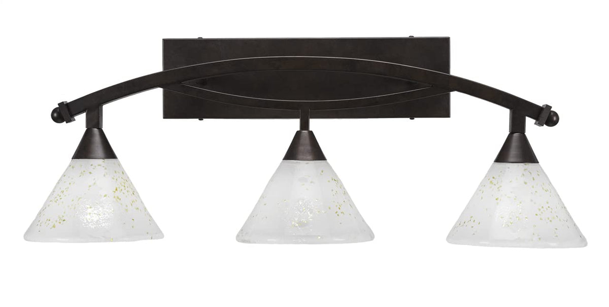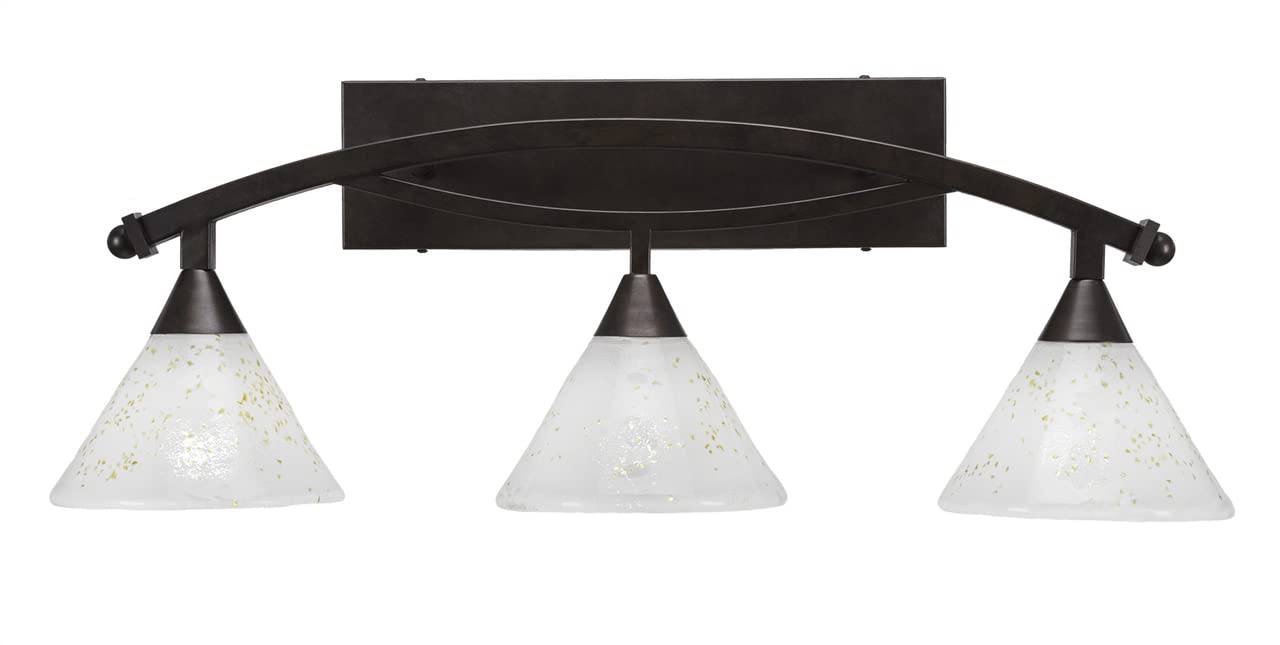 Q: Can I use this bath bar in a modern bathroom design?A: Yes, the Toltec Lighting Bow 3 Light Bath Bar features a sleek bronze finish and gold ice glass, making it a versatile choice that can complement both traditional and modern bathroom designs.