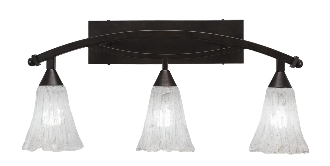 173-BRZ-729 Bow 3 Light Bath Bar Shown In Bronze Finish with 5.5" Italian Ice Glass. Rated for: Dry location. Light Bulb Data: 3 Medium 100 watt. Bulb included: No.