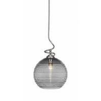 (900-BN-5132) Capri 1 Light Stem Pendant With Hang Straight Swivel Shown In Brushed Nickel Finish With 12" Smoke Ribbed Glass. Comes With 1-6", 2-12", And 1-18" Stem Sections/Hang Straight Swivel And 8 FT. Of Wire. Dry Location Rated. Light Bulb Data: 1 Medium 100 Watt. Bulb Included: No.