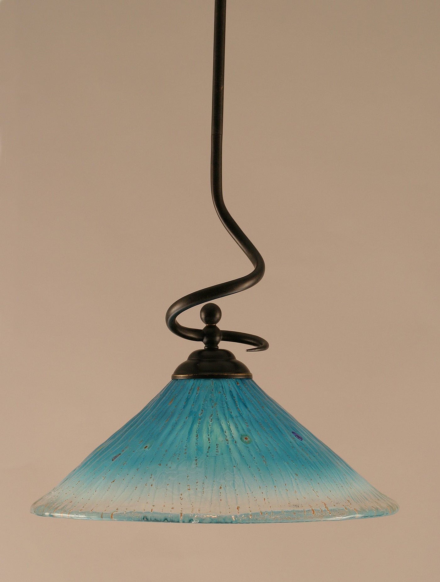900-DG-715 Capri Stem Pendant With Hang Straight Swivel Shown In Dark Granite Finish With 16" Teal Crystal Glass. Rated for: Dry location. Light Bulb Data: 1 Medium 150 watt. Bulb included: No.