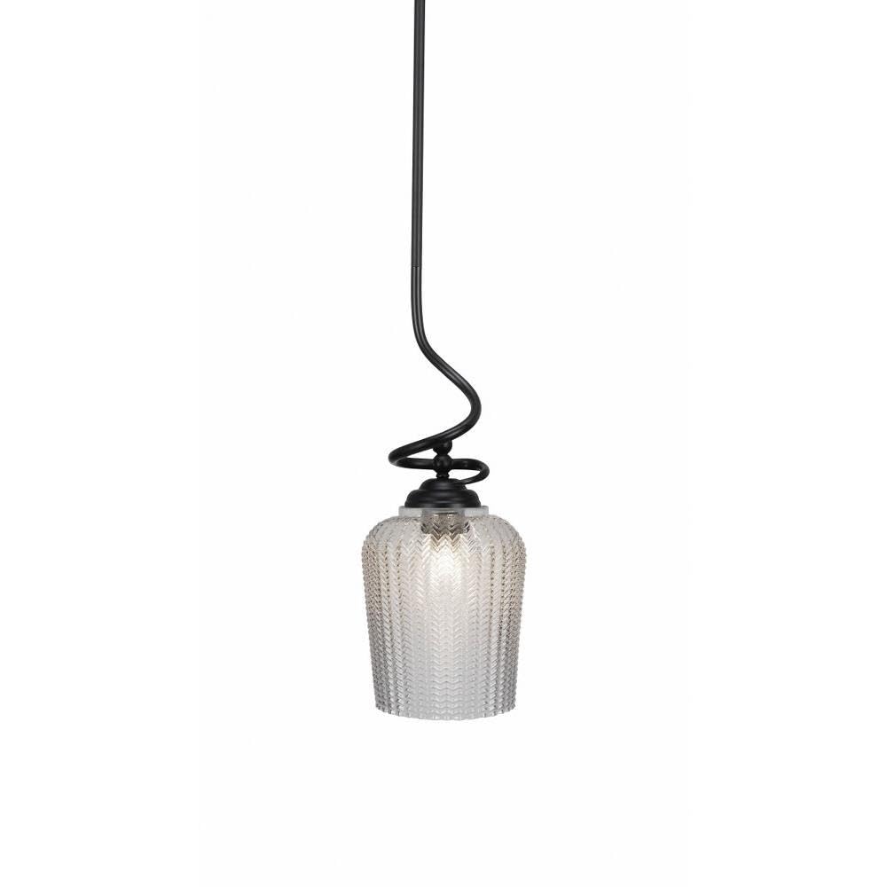 (900-MB-4280) Capri 1 Light Stem Pendant With Hang Straight Swivel Shown In Matte Black Finish With 9" Clear Textured Glass. Comes With 1-6", 2-12", And 1-18" Stem Sections/Hang Straight Swivel And 8 FT. Of Wire. Dry Location Rated. Light Bulb Data: 1 Medium 100 Watt. Bulb Included: No.