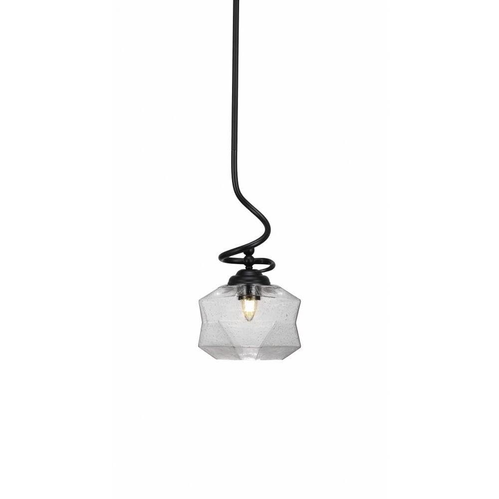 (900-MB-4490) Capri 1 Light Stem Pendant With Hang Straight Swivel Shown In Matte Black Finish With 8.75" Clear Bubble Glass . Comes With 1-6", 2-12", And 1-18" Stem Sections/Hang Straight Swivel And 8 FT. Of Wire. Dry Location Rated. Light Bulb Data: 1 Medium 100 Watt. Bulb Included: No.