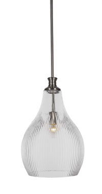 73-BN-4660 Carina Stem Hung Pendant Shown In Brushed Nickel Finish With 11.5" Clear Ribbed Glass. Rated for: Dry location. Light Bulb Data: 1 E26 60 watt. Bulb included: No.