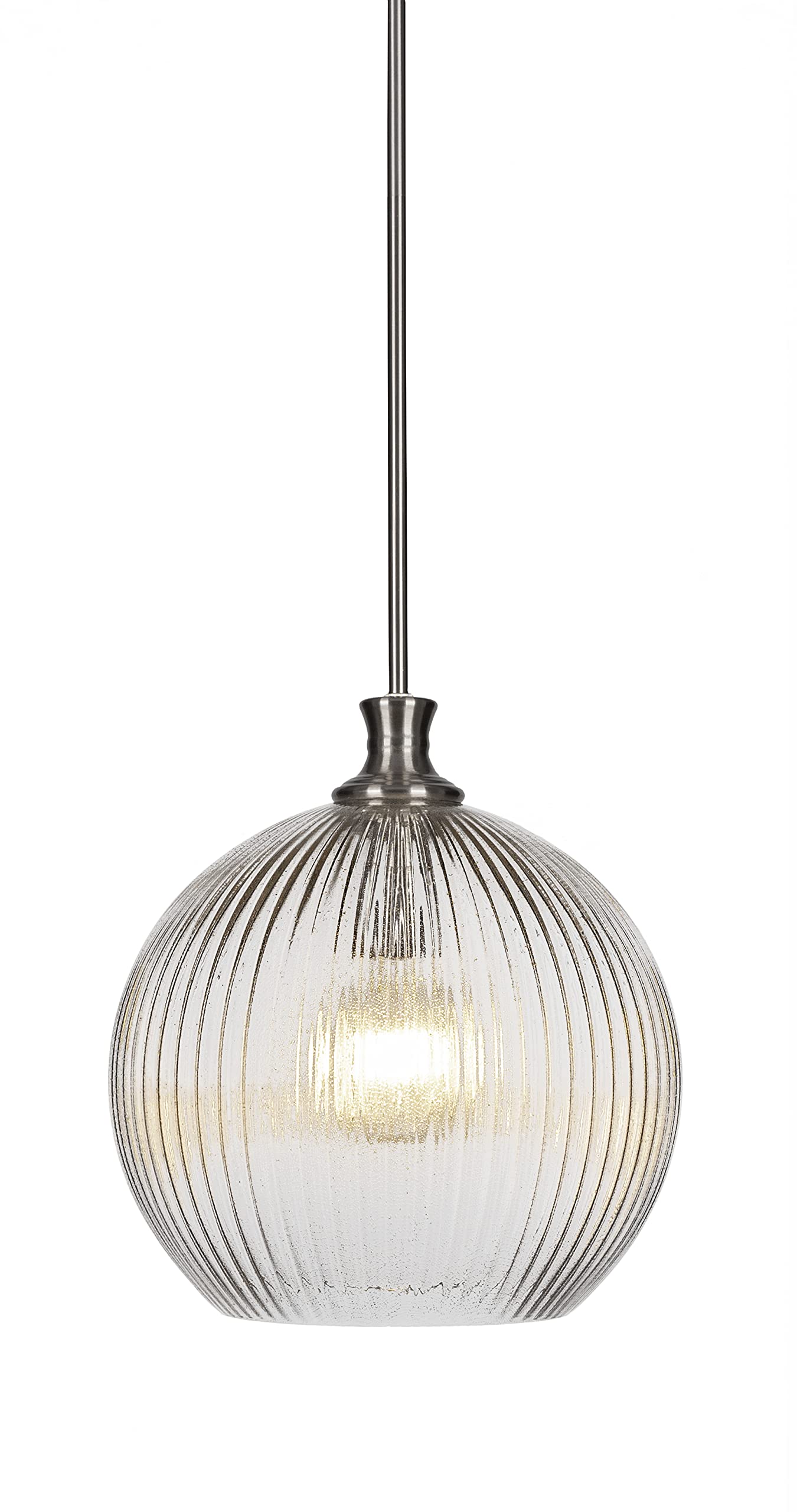 Carina Stem Hung Pendant In Brushed Nickel Finish With 13.75 Inch Micro Bubble Ribbed Glass And LED Bulb