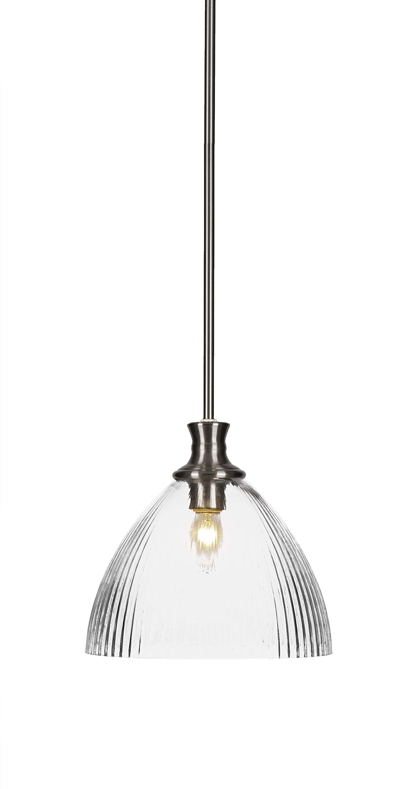 76-BN-4630 Carina Stem Hung Pendant In Brushed Nickel Finish With 10.75" Clear Ribbed Glass. Rated for: Dry location. Light Bulb Data: 1 E26 60 watt. Bulb included: No.