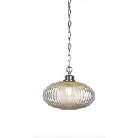 92-BN-4658 Carina Chain Hung Pendant In Brushed Nickel Finish With 12" Micro Bubble Ribbed Glass. Rated for: Dry location. Light Bulb Data: 1 E26 60 watt. Bulb included: No.