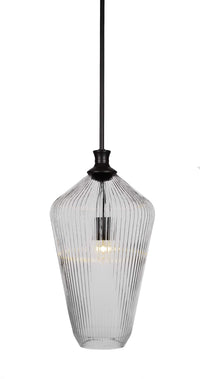 73-MB-4650 Carina Stem Hung Pendant In Matte Black Finish With 10" Clear Ribbed Glass. Rated for: Dry location. Light Bulb Data: 1 E26 100 watt. Bulb included: No.