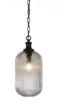 94-MB-4608 Carina Chain Hung Pendant In Matte Black Finish With 8.25" Micro Bubble Ribbed Glass. Rated for: Dry location. Light Bulb Data: 1 E26 60 watt. Bulb included: No.