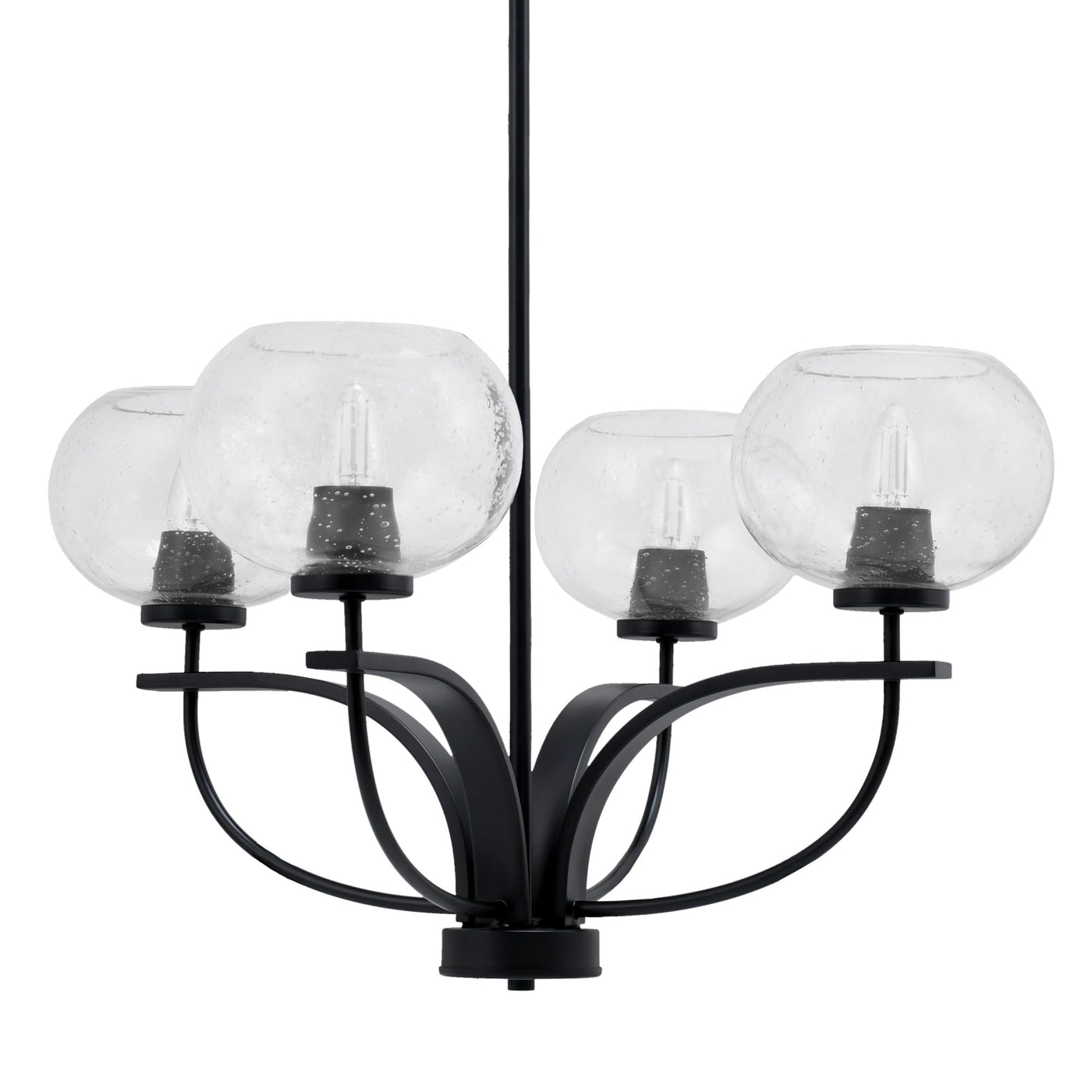 Toltec Lighting Cavella 4 Light Chandelier Shown In Matte Black Finish With 7" Clear Bubble Glass