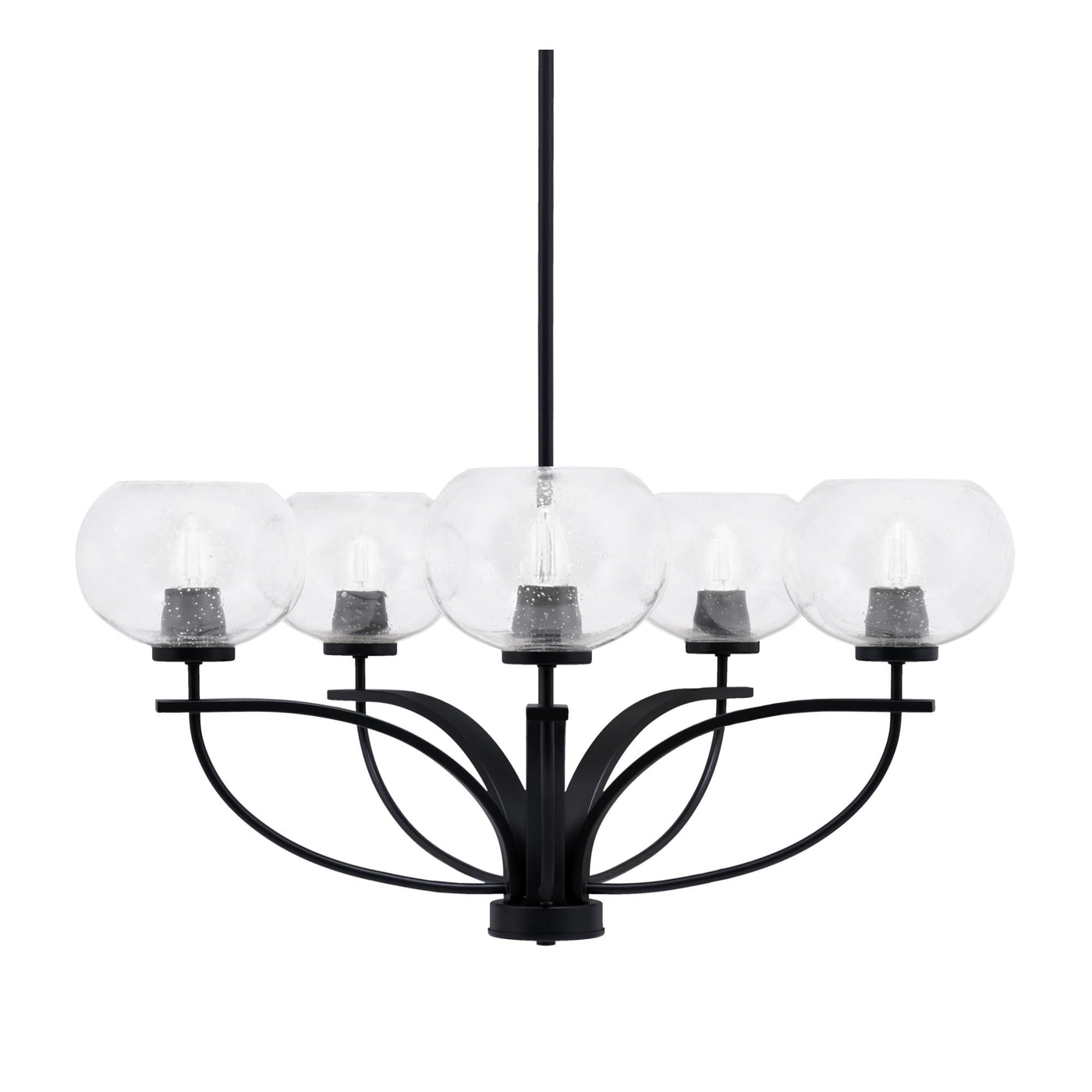 Toltec Lighting Cavella 5 Light Chandelier In Matte Black Finish With 7" Clear Bubble Glass