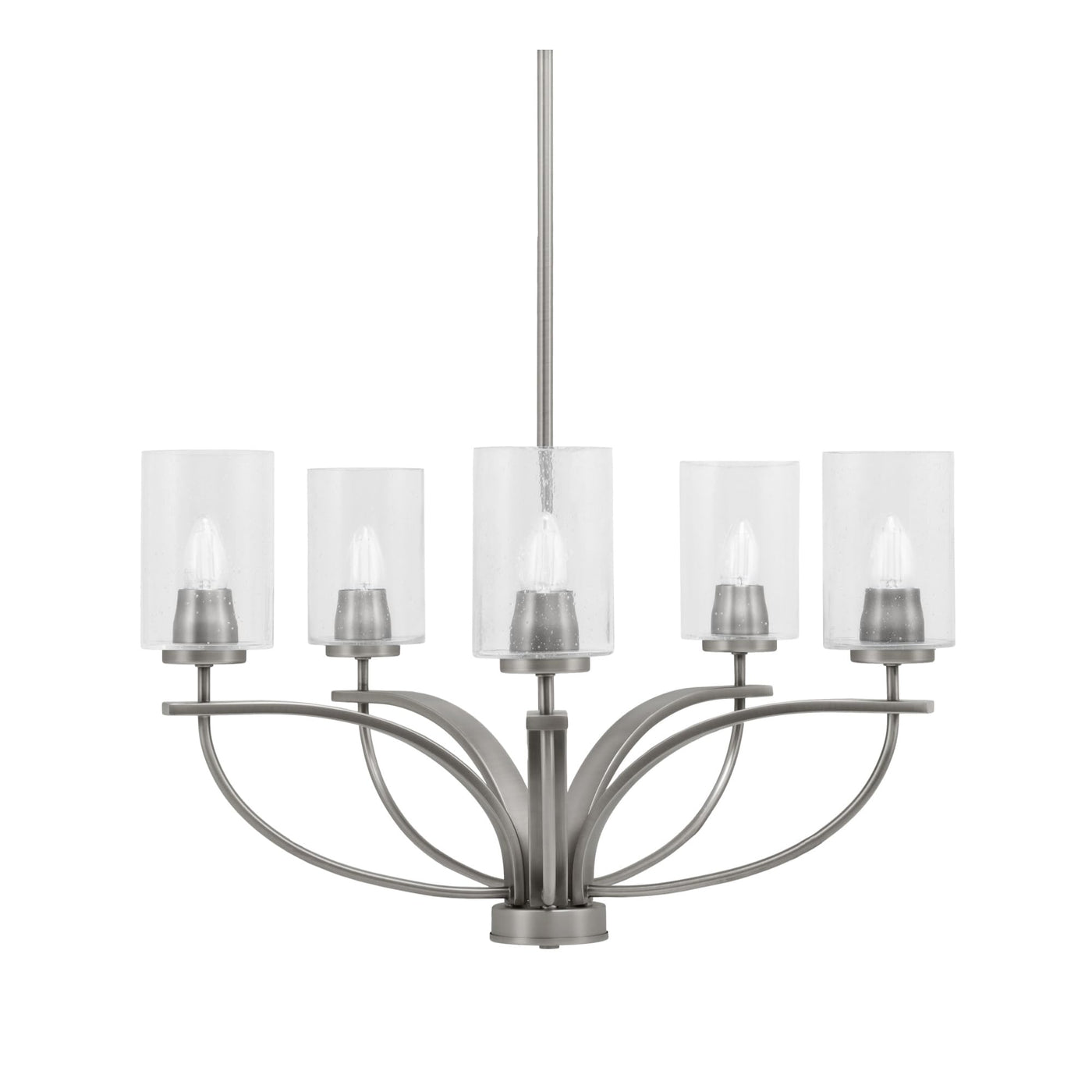 Cavella 5 Light Chandelier, Graphite Finish, 4 Inch Clear Bubble Glass, Comes Standard With: 1-3", 1-6", 3-12", 8 Foot Wire Stem Sections, Works on a Sloped Ceiling