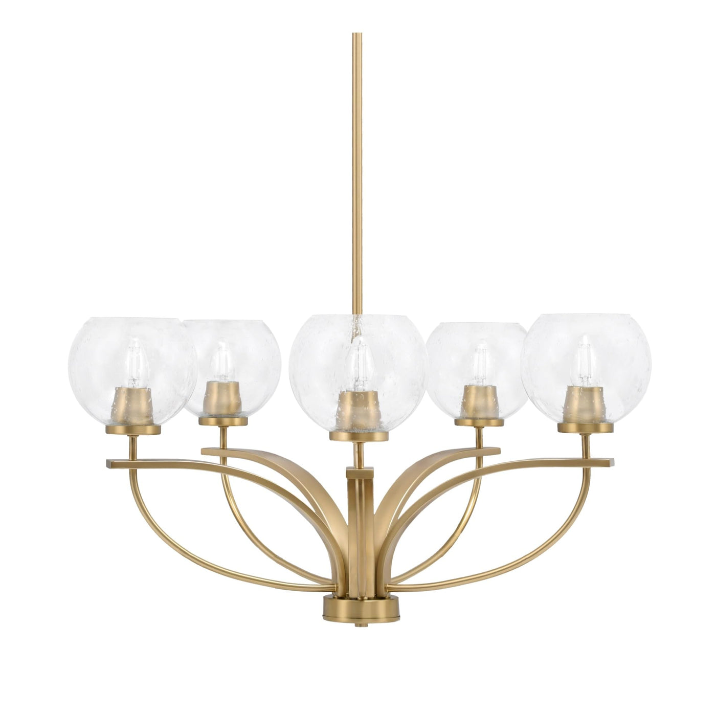 Toltec Lighting Cavella 5 Light, Uplight Chandelier, Hang Straight Swivel, New Age Brass Finish, 5.75" Clear Bubble Glass