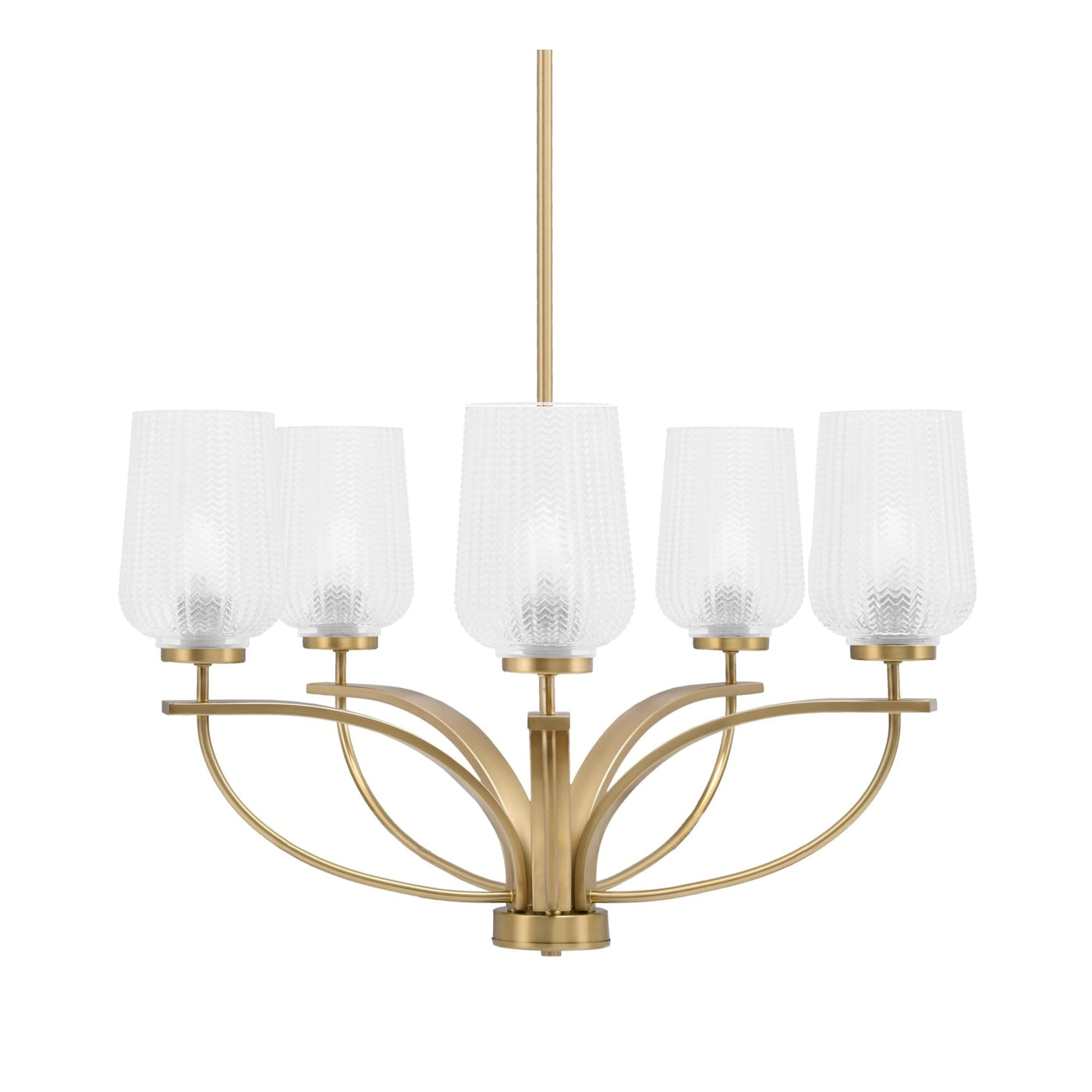 Toltec Lighting Cavella 5 Light, Uplight Chandelier, Hang Straight Swivel, New Age Brass Finish, 5" Clear Textured Glass