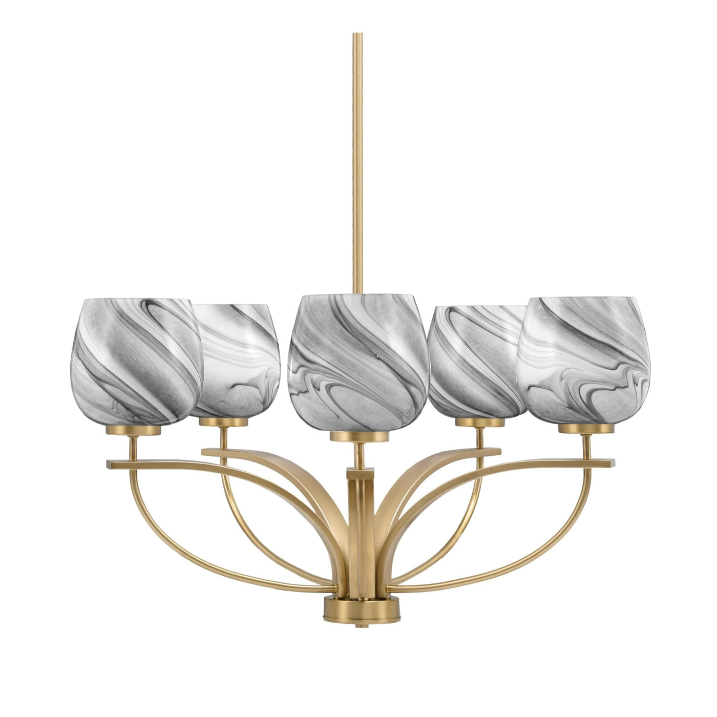 Toltec Lighting Cavella 5 Light, Uplight Chandelier, Hang Straight Swivel, New Age Brass Finish, 6" Onyx Swirl Glass