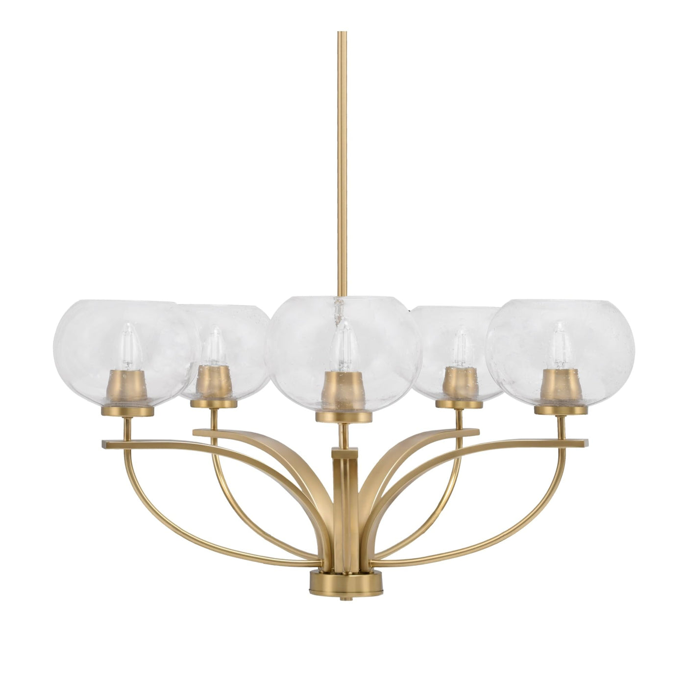 Toltec Lighting Cavella 5 Light, Uplight Chandelier, Hang Straight Swivel, New Age Brass Finish, 7" Clear Bubble Glass