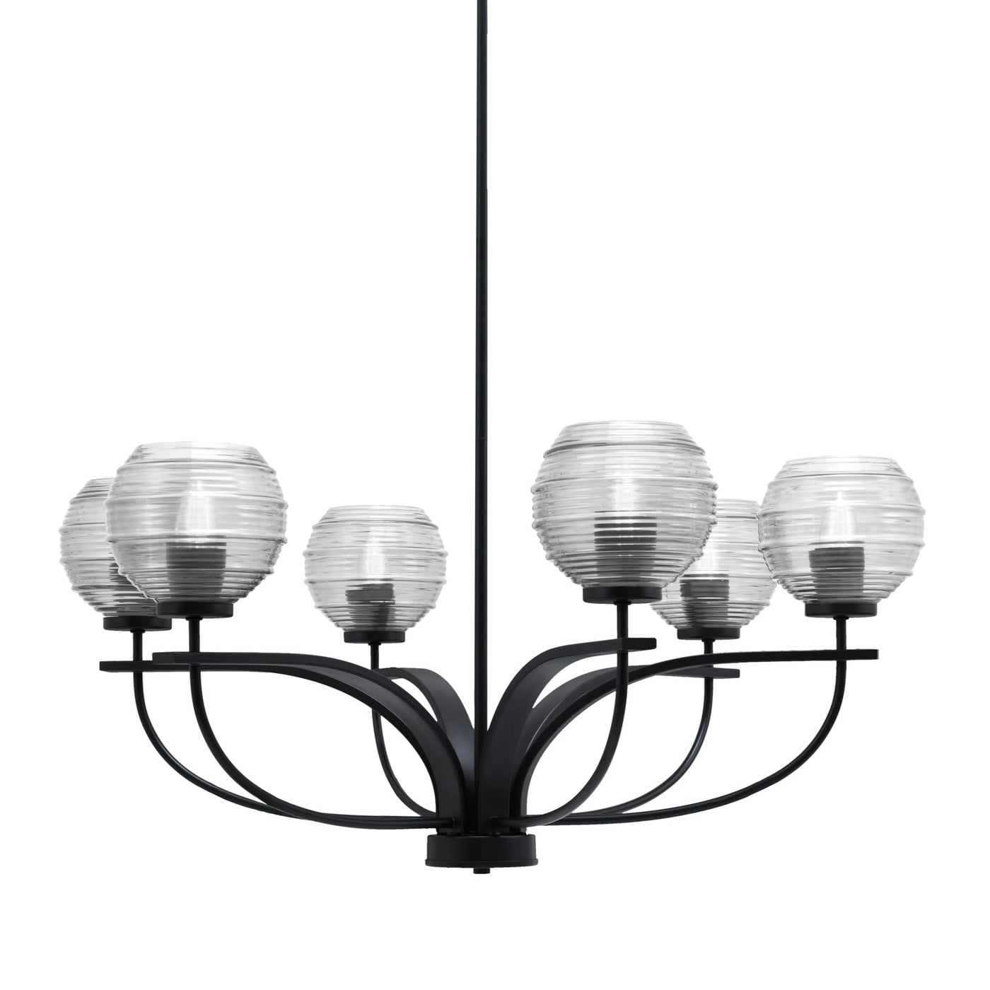 Toltec Lighting Cavella 6 Light Chandelier Shown In Matte Black Finish With 6" Clear Ribbed Glass