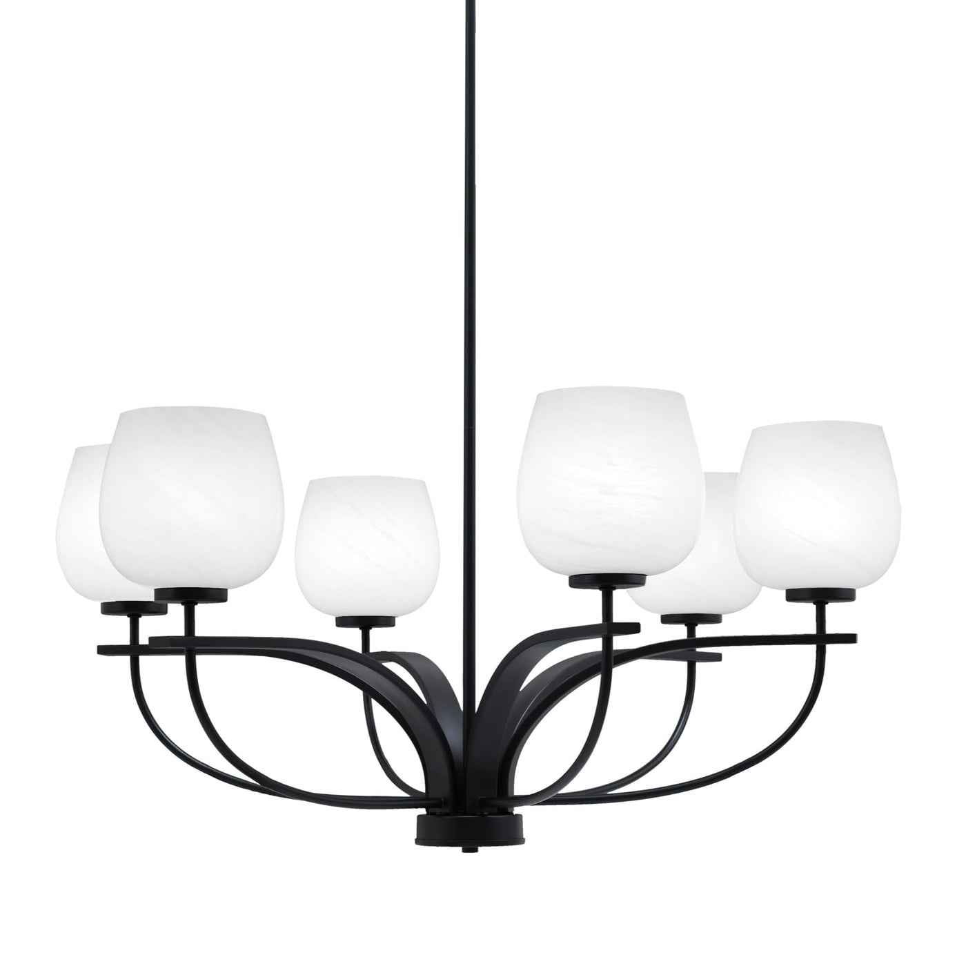 Toltec Lighting Cavella 6 Light Chandelier Shown In Matte Black Finish With 6" White Marble Glass