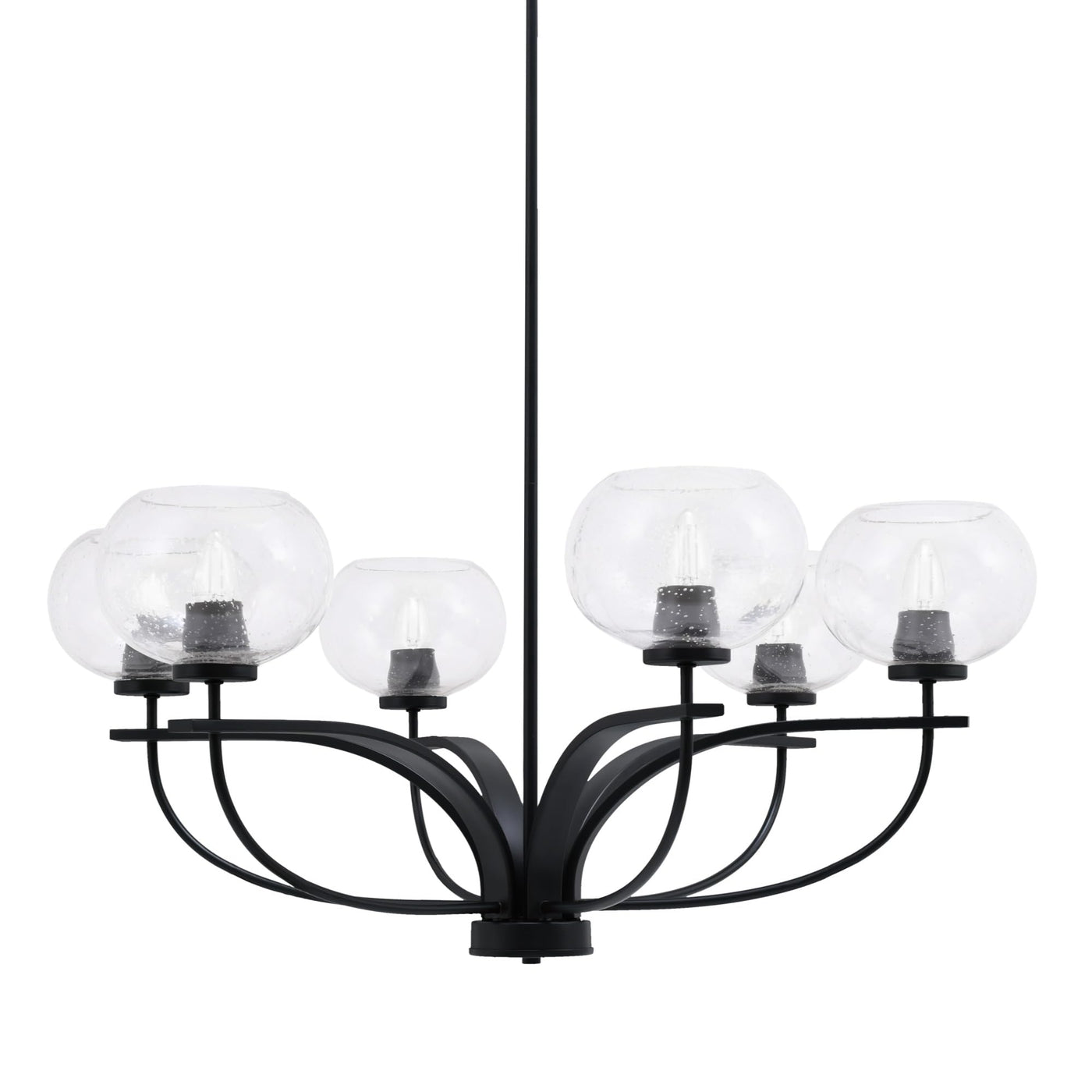 Toltec Lighting Cavella 6 Light Chandelier Shown In Matte Black Finish With 7" Clear Bubble Glass