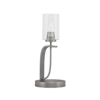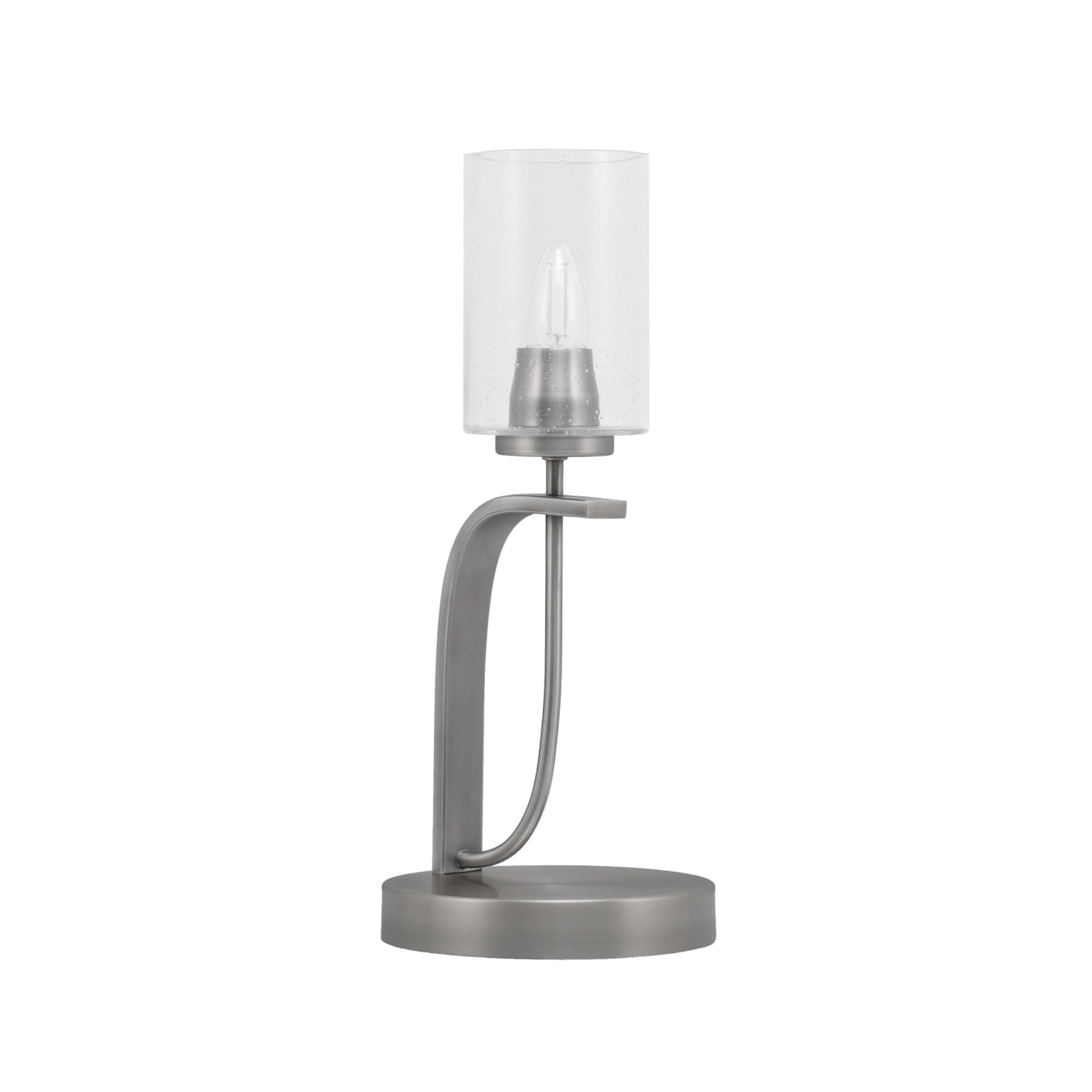 Cavella Accent Lamp, Graphite Finish, 4" Clear Bubble Glass Comes Standard With: Base Dimension: 7" Diameter, Cord Length 7ft 8in, Inline Rocker Switch