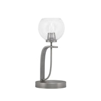 Cavella Accent Lamp, Graphite Finish, 5.75" Clear Bubble Glass comes standard with: Base Dimension: 7" Diameter, Cord Length 7 ft 8 in, Inline Rocker Switch