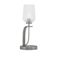 Cavella Accent Lamp, Graphite Finish, 5 Inch Clear Textured Glass comes standard with: Base Dimension: 7" Diameter, Cord Length 7 ft 8 in, Inline Rocker Switch
