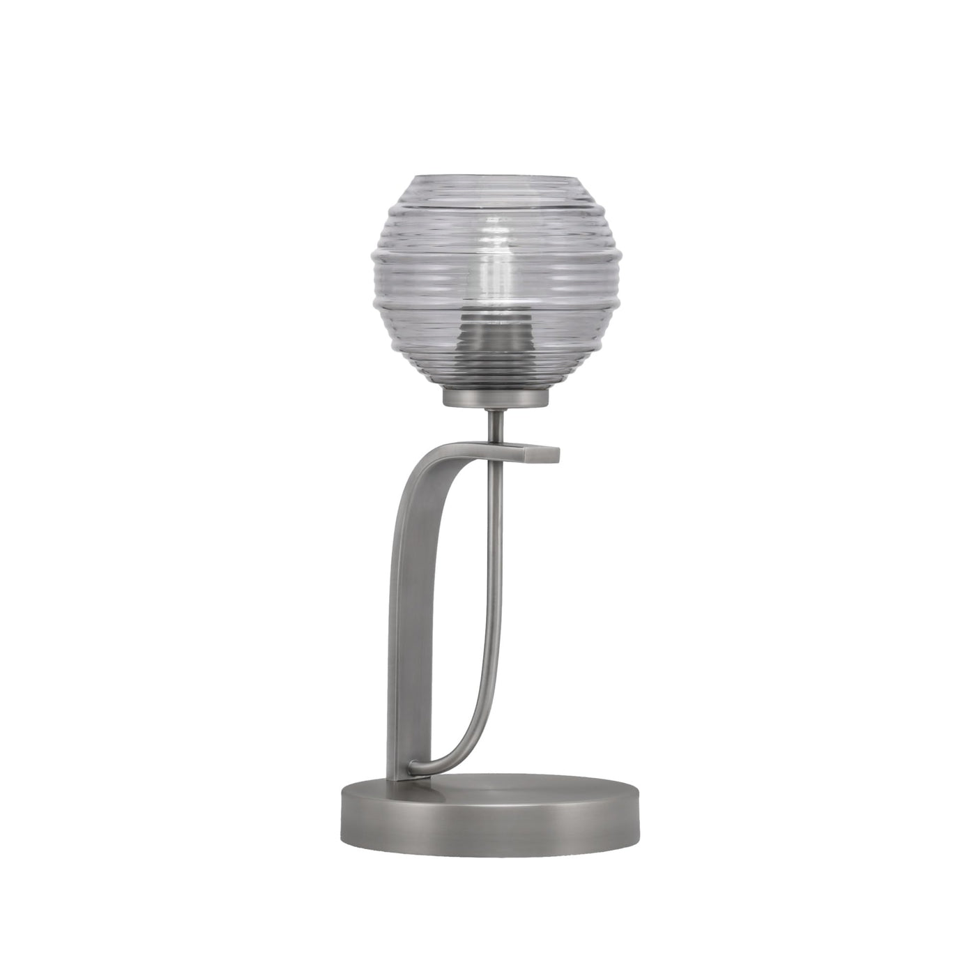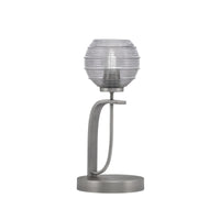 Q: What is the size of the Toltec Lighting Cavella Accent Lamp?A: The Toltec Lighting Cavella Accent Lamp features a size of 6 inches with a smoke ribbed glass design.