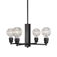 Q: What type of light bulbs does the Toltec Lighting Edge 4 Light Chandelier use?A: The Toltec Lighting Edge 4 Light Chandelier uses 4 medium 4 watt LED bulbs, which are included with the chandelier.
