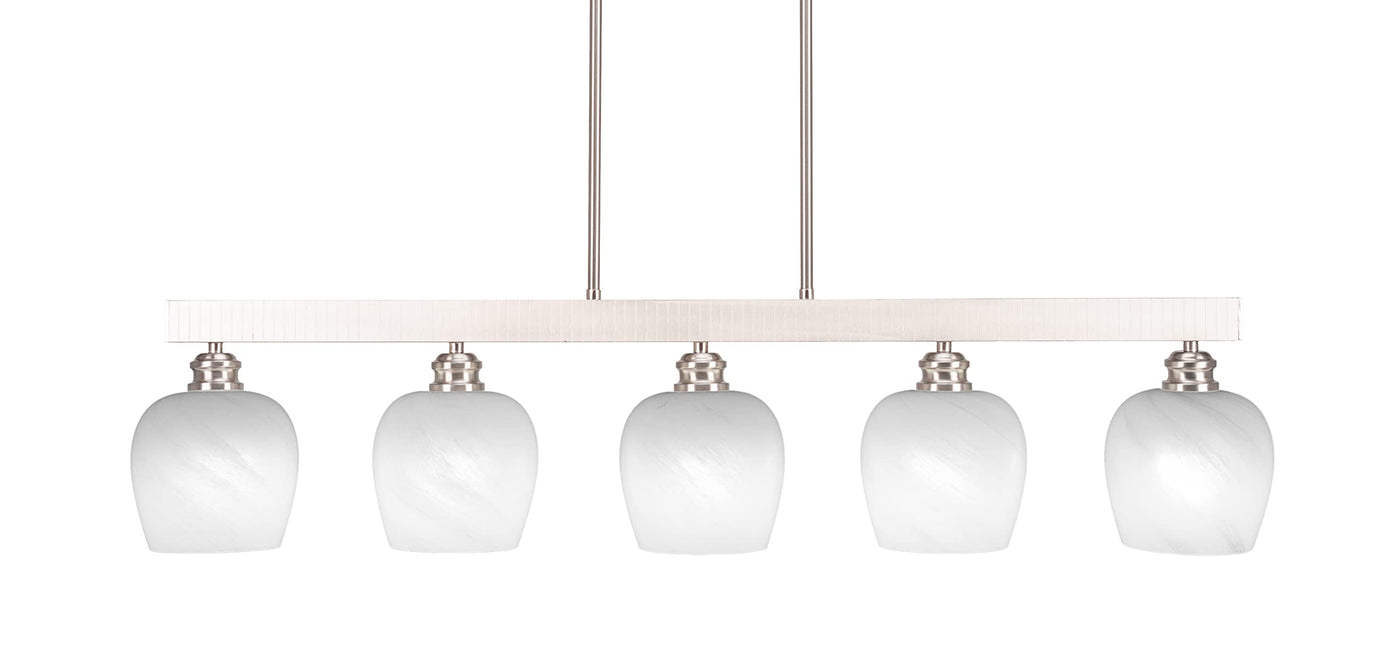 (1185-BN-4811) Edge 5 Light Island Bar In Brushed Nickel Finish With 6" White Marble Glass. Rated for: Dry location. Light Bulb Data: Silver Tones 5 E26 watt. Bulb included: No.