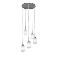 1175-BN-310 Edge 5 Light Cluster Pendalier Shown In Brushed Nickel Finish With 4" White Muslin Glass. Rated for: Dry location. Light Bulb Data: 5 Medium 60 watt. Bulb included: No.