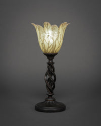 61-DG-1025 Elegante Mini Table Lamp Shown In Dark Granite Finish With 7" Vanilla Leaf Glass. Rated for: Dry location. Light Bulb Data: 1 Medium 75 watt. Bulb included: No.