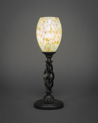 61-DG-406 Elegante Mini Table Lamp Shown In Dark Granite Finish With 5" Ivory Glaze Seashell Glass. Rated for: Dry location. Light Bulb Data: 1 Medium 75 watt. Bulb included: No.