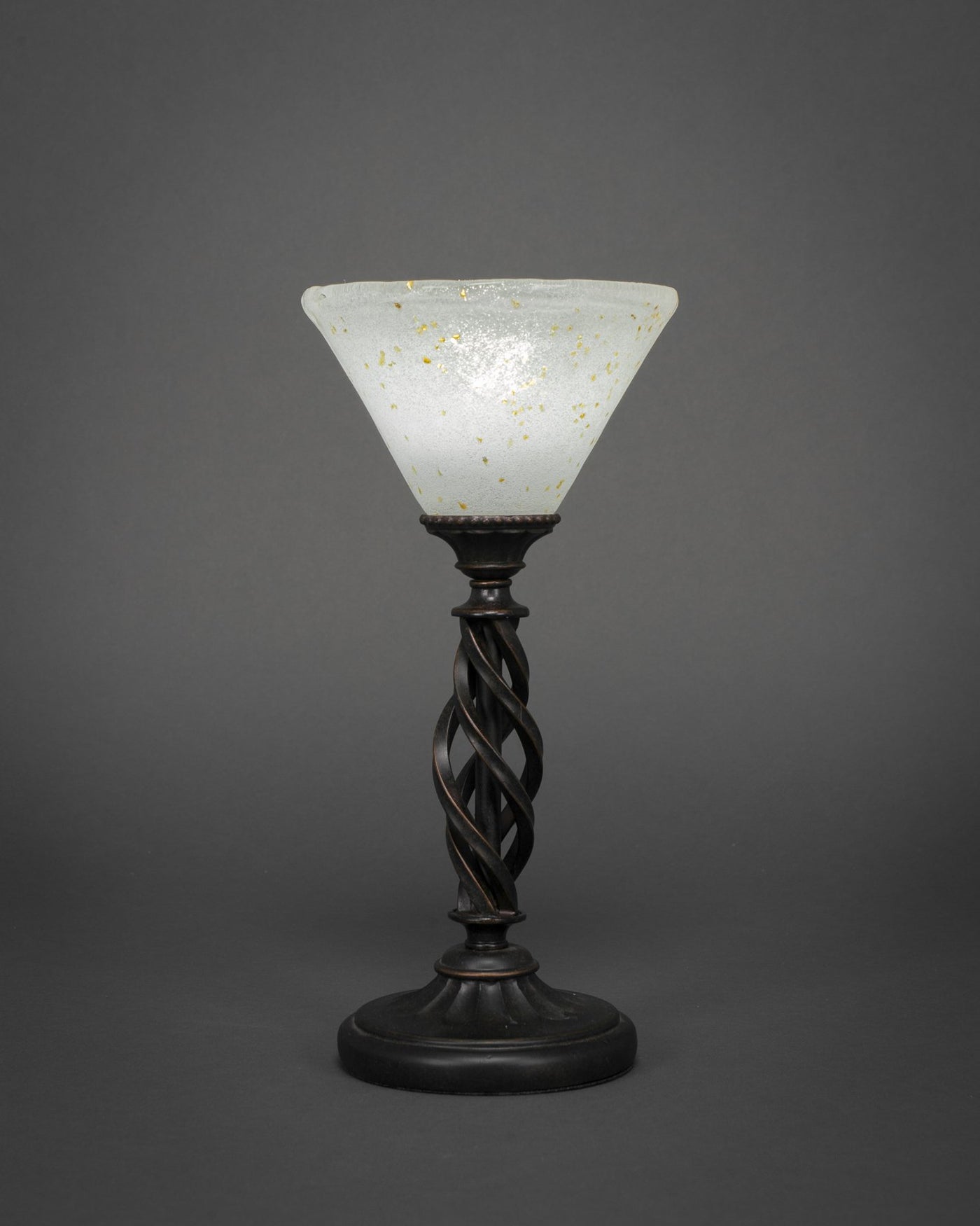 61-DG-7145 Elegante Mini Table Lamp Shown In Dark Granite Finish With 7" Gold Ice Crystal Glass. Rated for: Dry location. Light Bulb Data: 1 Medium 75 watt. Bulb included: No.