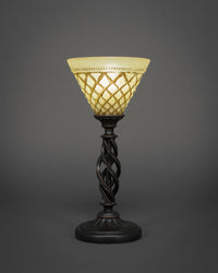 61-DG-7185 Elegante Mini Table Lamp Shown In Dark Granite Finish With 7" Chocolate Icing Crystal Glass. Rated for: Dry location. Light Bulb Data: 1 Medium 75 watt. Bulb included: No.