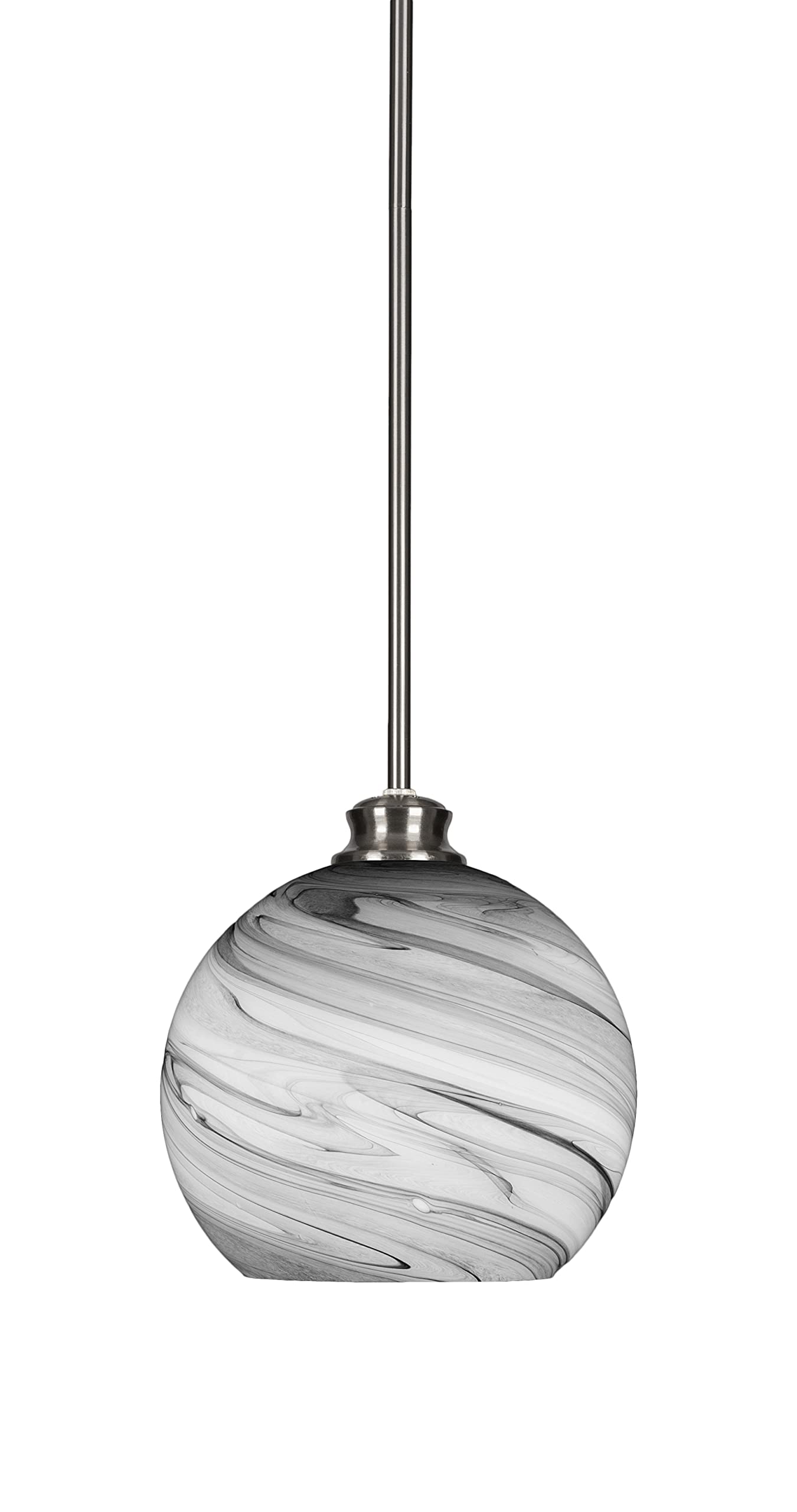 Kimbro Stem Hung Pendant In Brushed Nickel Finish With 13.75 Inch Onyx Swirl Glass