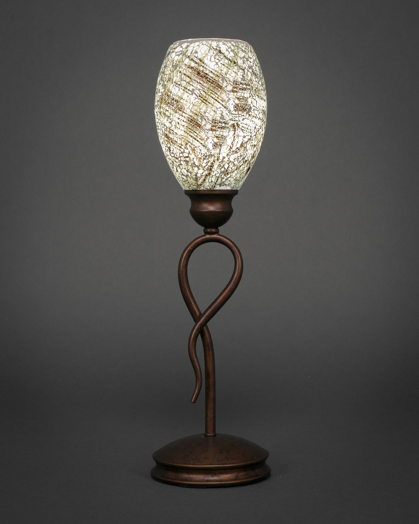 35-BRZ-5054 Leaf Mini Table Lamp Shown In Bronze Finish With 5" Natural Fusion Glass. Rated for: Dry location. Light Bulb Data: 1 Medium 75 watt. Bulb included: No.