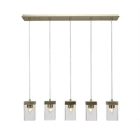 3215-NAB-530 Nouvelle 5 Light Cord Linear Pendalier Shown In New Age Brass Finish With 4" Clear Bubble Glass. Rated for: Dry location. Light Bulb Data: 5 Medium 60 watt. Bulb included: No.