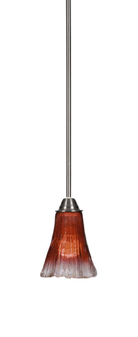 3401-BN-726 Paramount 1 Light Mini Pendant In Brushed Nickel Finish With 5.5" Raspberry Crystal Glass. Rated for: Dry location. Light Bulb Data: 1 E26 100 watt. Bulb included: No.