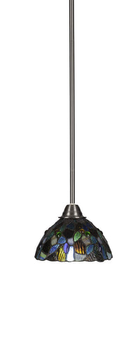 3401-BN-9955 Paramount 1 Light Mini Pendant In Brushed Nickel Finish With 7" Blue Mosaic Art Glass. Rated for: Dry location. Light Bulb Data: 1 E26 100 watt. Bulb included: No.