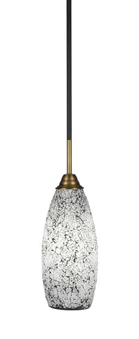 Q: What makes the Toltec Lighting Paramount Mini Pendant unique?A: The Toltec Lighting Paramount Mini Pendant features a stylish combination of matte black and brass finishes, along with a distinctive black fusion glass, making it an elegant addition to any modern decor.