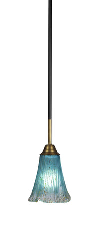 3401-MBBR-725 Paramount 1 Light Mini Pendant In Matte Black And Brass Finish With 5.5" Teal Crystal Glass. Rated for: Dry location. Light Bulb Data: 1 E26 100 watt. Bulb included: No.