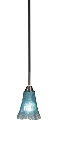 3401-MBBN-725 Paramount 1 Light Mini Pendant In Matte Black And Brushed Nickel Finish With 5.5" Teal Crystal Glass. Rated for: Dry location. Light Bulb Data: 1 E26 100 watt. Bulb included: No.