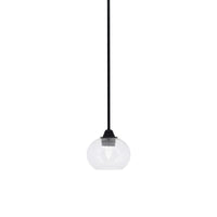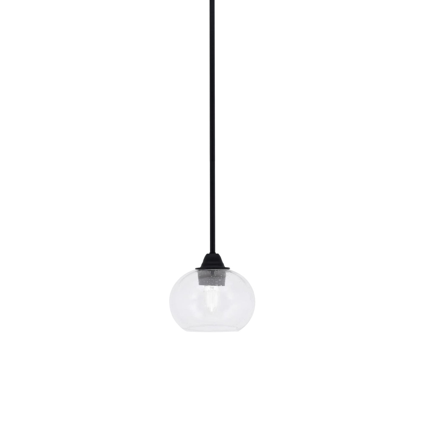 Toltec Lighting Paramount 1 Light Mini Pendant In Matte Black Finish With 7" Clear Bubble Glass