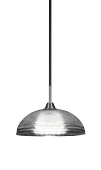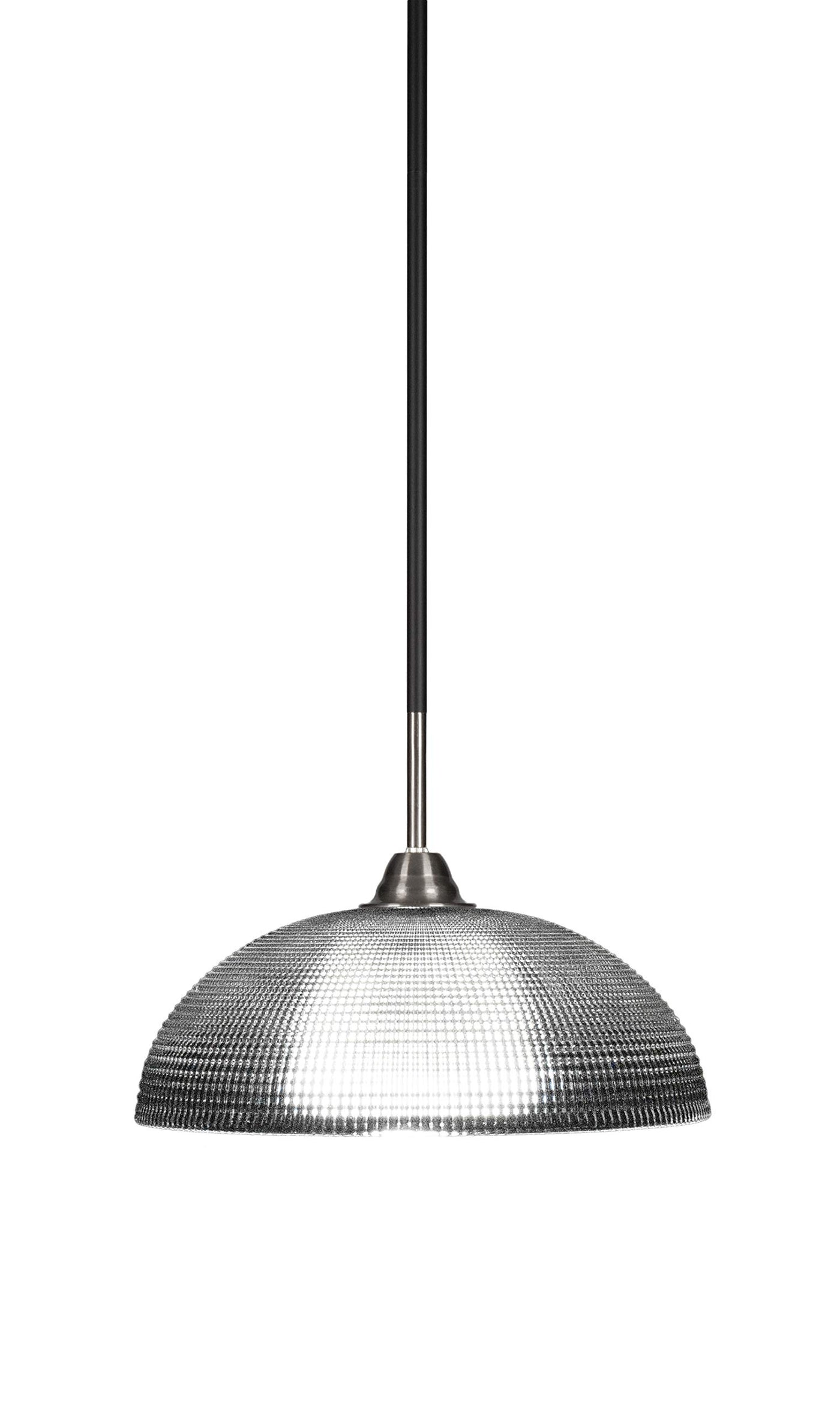 3401-MBBN-540 Paramount 1 Light Pendant In Matte Black And Brushed Nickel Finish With 13" Clear Ribbed Glass. Rated for: Dry location. Light Bulb Data: 1 E26 100 watt. Bulb included: No.